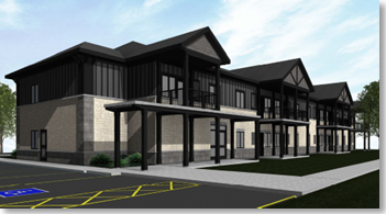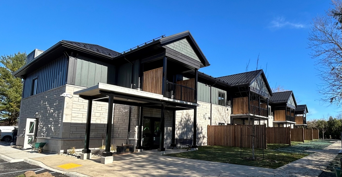 In conjunction with the Canada–Ontario Community Housing Initiative, this 19,300-square-foot building was designed under the Rapid Housing Initiative to facilitate expedited construction through the use of modular building components. The two-storey apartment building comprises 20 one-bedroom units, seven of which are barrier-free, with the capacity to convert additional units to barrier-free in the future. The building was designed to exceed the National Energy Code for Buildings by 18 percent.